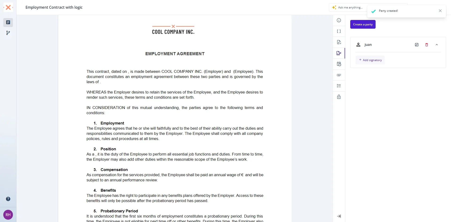 Incorporating a signatory into your documents within Bounsel is a simple and intuitive process. Whether you’re finalizing a contract or approving an agreement, here’s how to ensure your documents are signed by the right people.