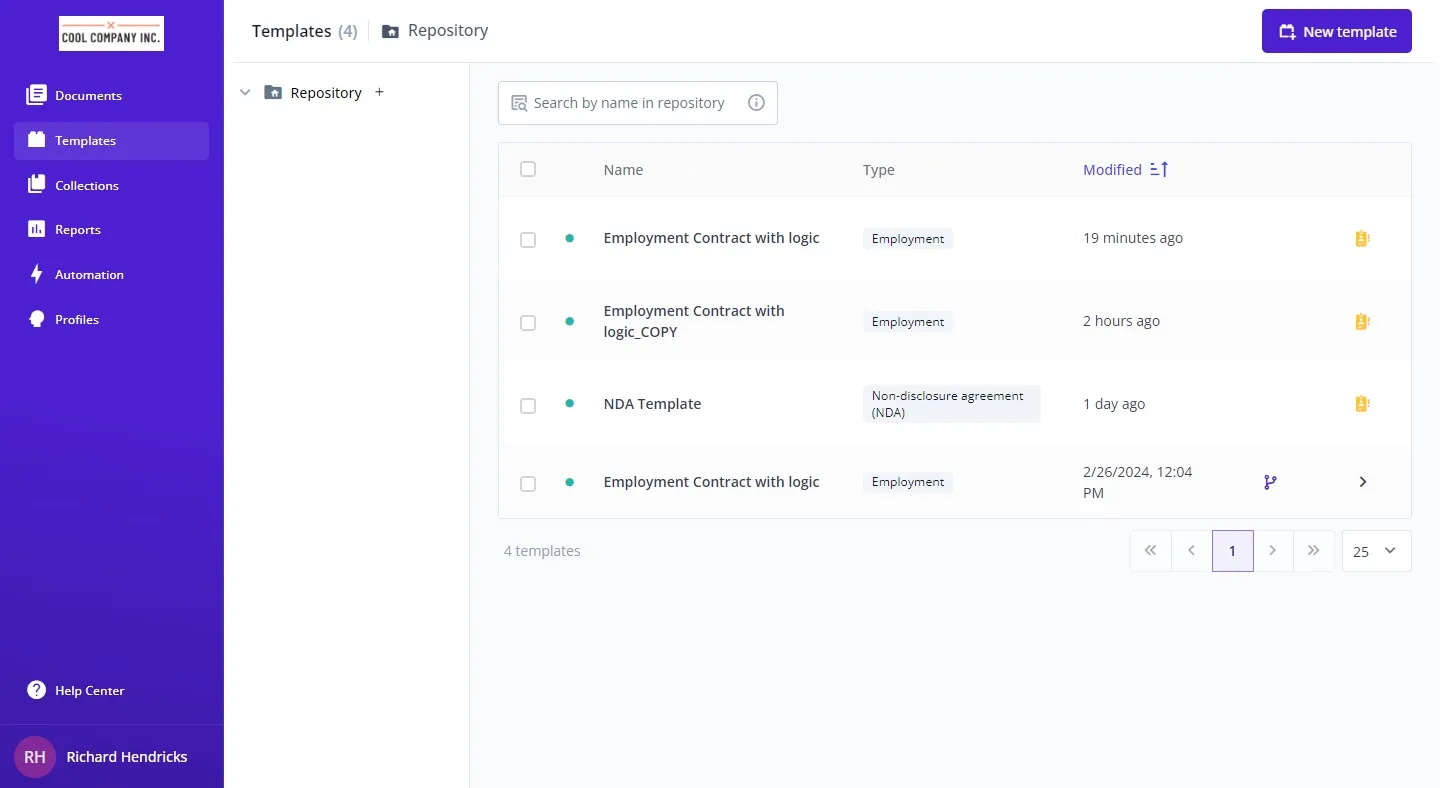 Start your journey at the template section in bounsel, the gateway to your template library.