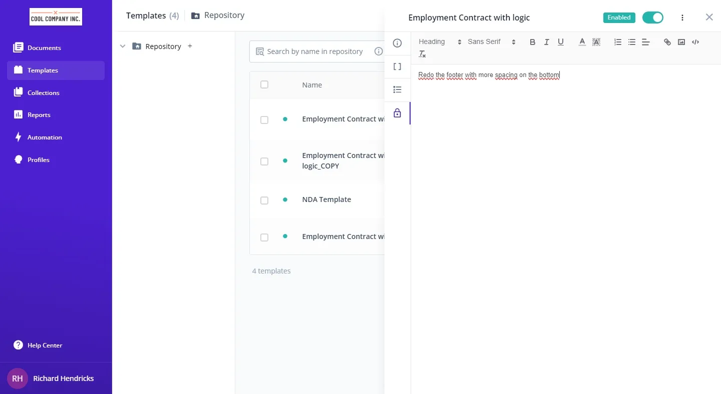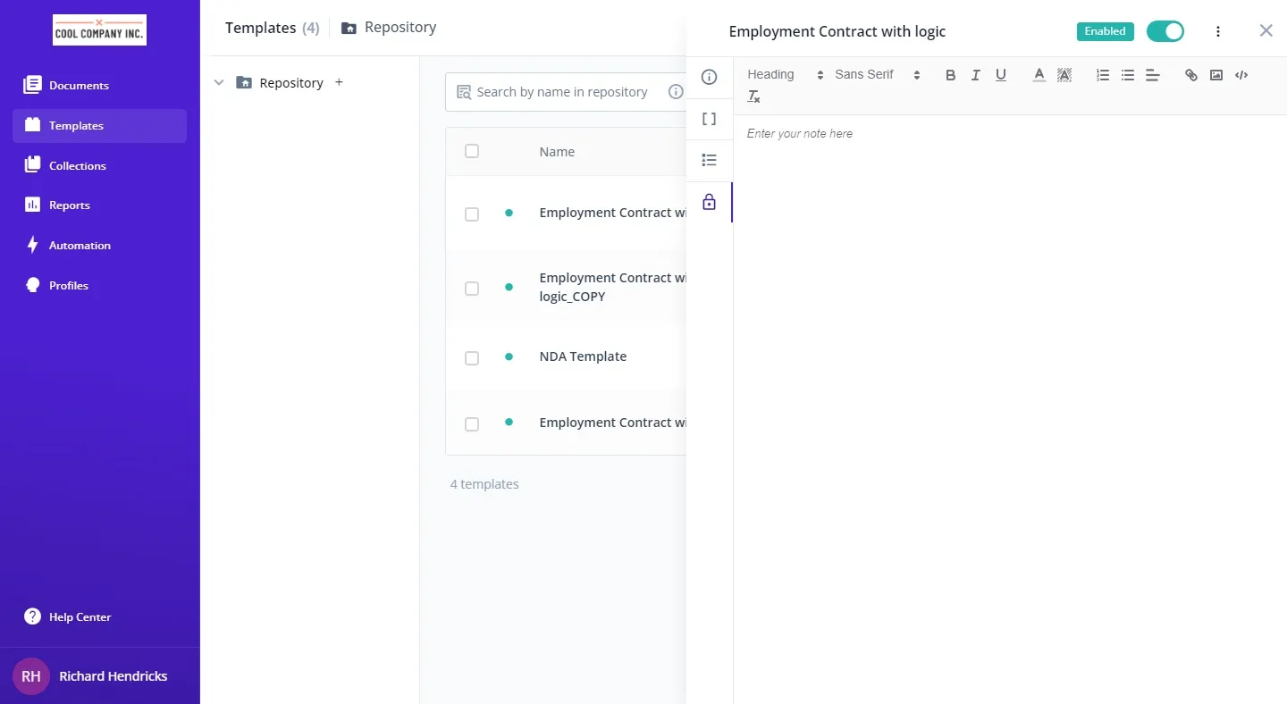 Enhancing your template management in Bounsel with private notes is straightforward. Here’s how to include personal reminders or instructions to your templates without altering the main content. 🔐