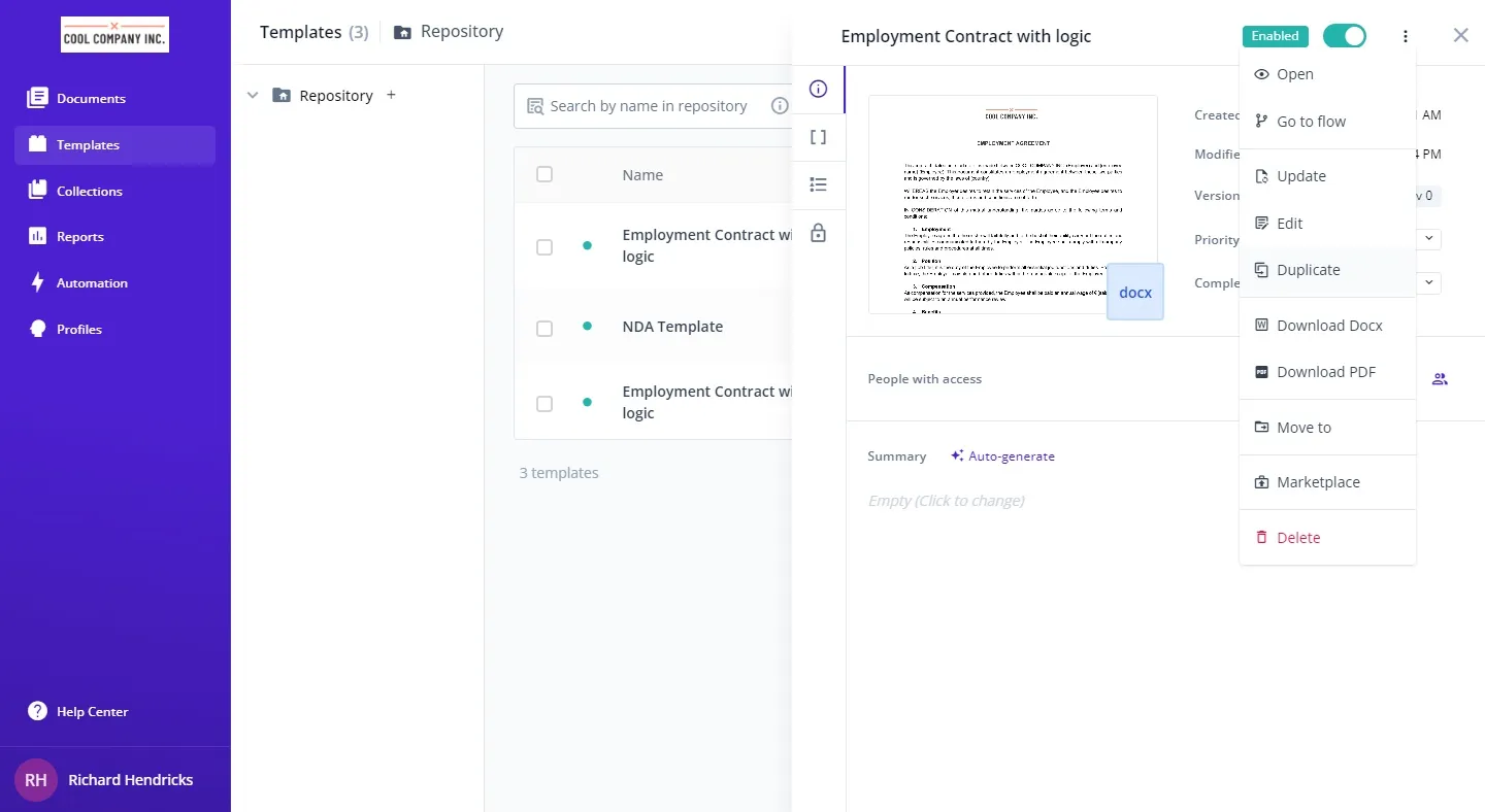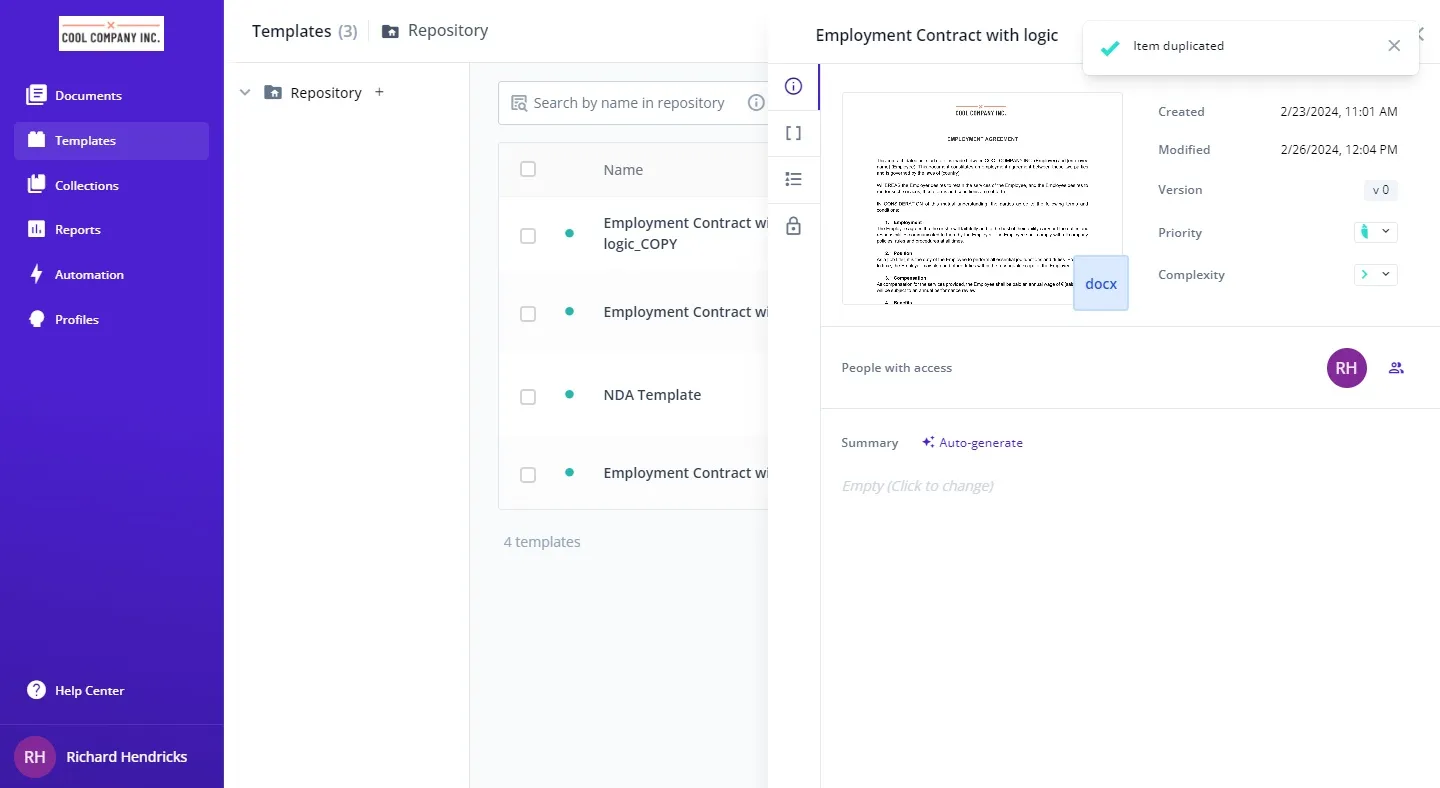 By following these steps, you’ve efficiently created a duplicate of your Bounsel template, ready for any adjustments or specific use cases you have in mind. This functionality ensures that your original documents remain unchanged, while you explore creative or structural changes in their duplicates. 🌟